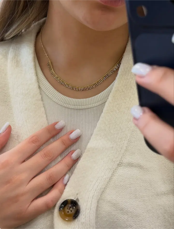 Akşam kıyafetlerine sofistike dokunuş katan trend aksesuar. Sıralı zirkon taşlar ışığı yansıtarak göz alıcı bir etki yaratır. Gala ve özel davetlerde dikkat çeken parça.